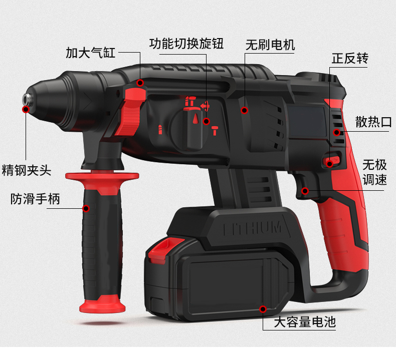 | हथौड़ा चलाने की दर: | प्रति मिनट 6200 बार तक | बैटरी की क्षमता: | 5.0एएच |